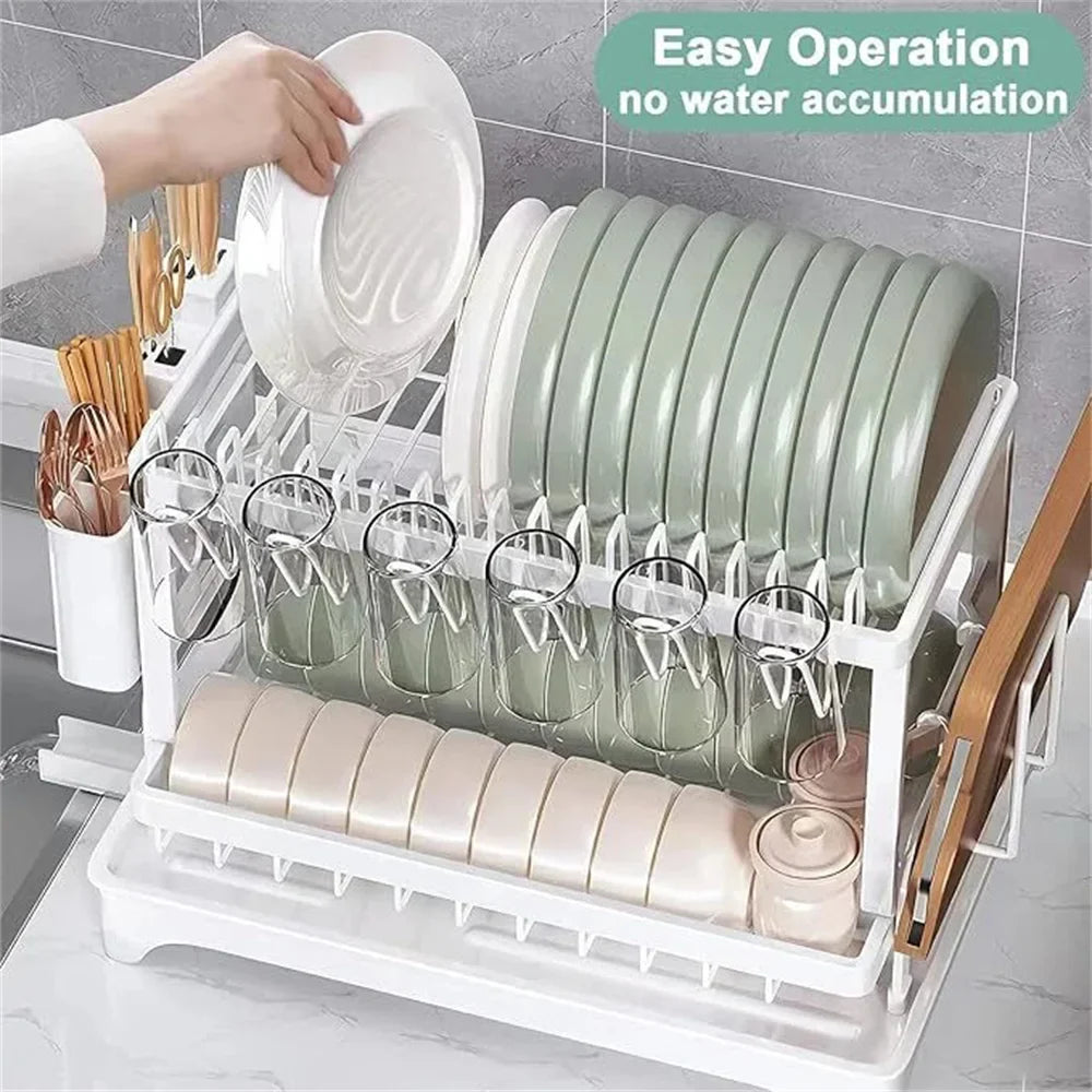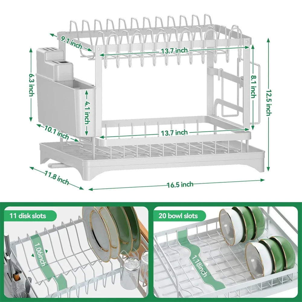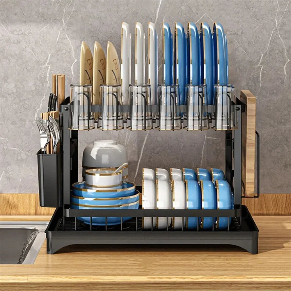 Suszarka do naczyń 2-poziomowa z ociekaczem i pojemnikiem na sztućce