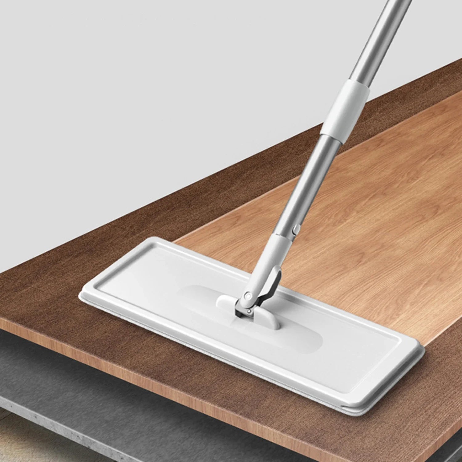 Nowoczesny zestaw mop + wiadro z systemem szybkiego wyciskania. Wystarczy przesunąć drążek w górę i w dół, aby skutecznie usunąć wodę i brud – bez moczenia rąk.