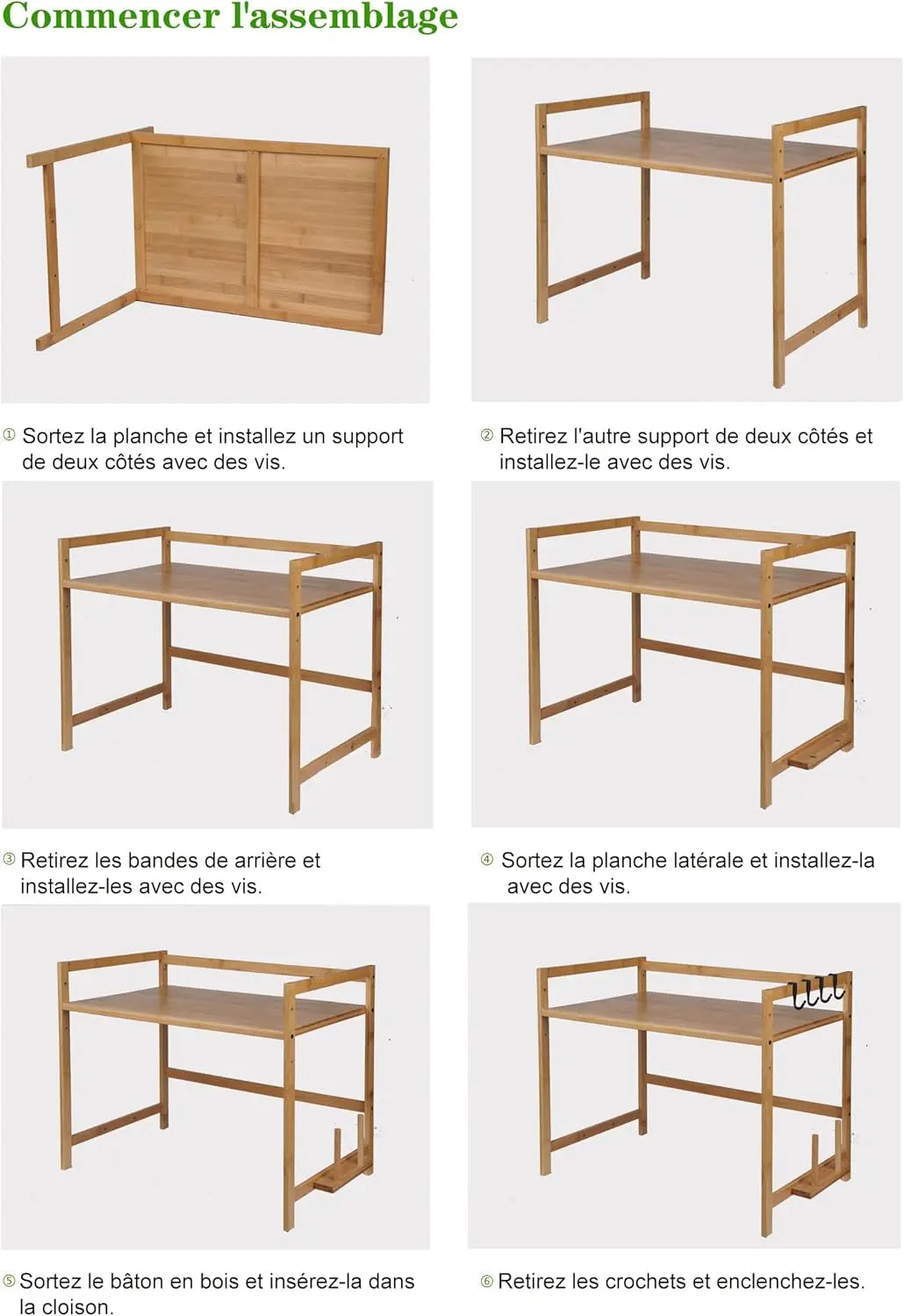 Bambusowa półka kuchenna pod mikrofalę – organizer z 4 haczykami