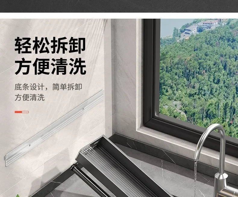 Nowoczesny organizer ścienny do kuchni, który pomaga uporządkować przyprawy, sosy i butelki z olejem. Dzięki montażowi na ścianie zwalnia miejsce na blacie i ułatwia codzienne gotowanie.